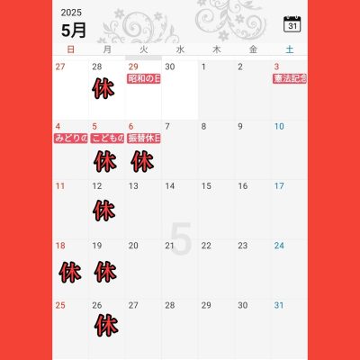 毎週月曜日、第一火曜日、第三日曜日をお休みいただきます。画像を参照にされてくださいませ~